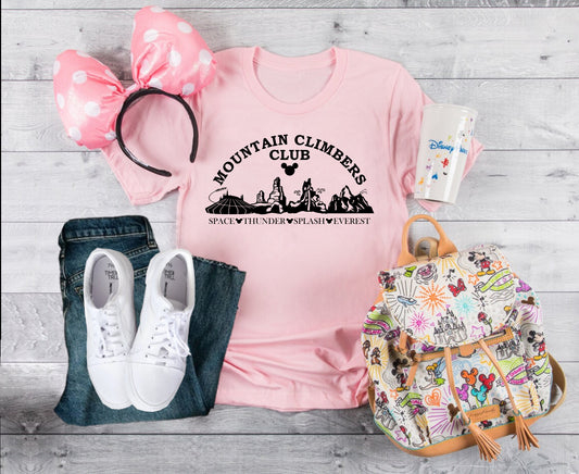 Mountain Climbers Club Tee Shirt, Disney Trip Shirt, Vacation Shirt, Disney Mountain Tee, Women's Tee, Space Thunder Splash Everest Shirt