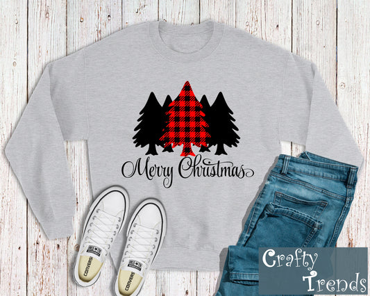Merry Christmas Sweatshirt, Christmas Trees Shirt,Christmas Plaid Tree Shirt,Merry Christmas Shirt