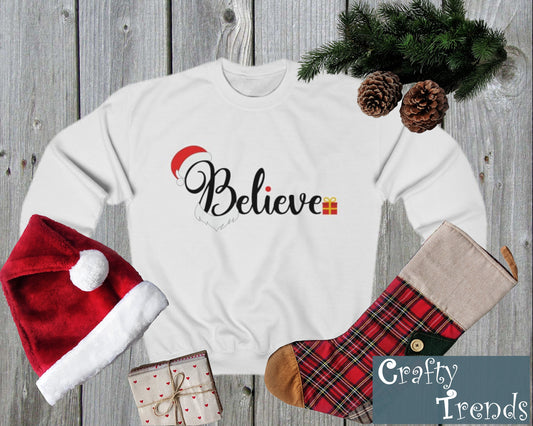 Funny Christmas Shirt Believe Santa Hat and Beard, Holiday Shirt