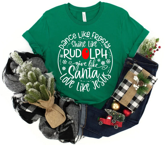 Dance Like Frosty Shine Like Rudolph Give Like Santa Love Like Jesus, Christmas Shirt, Holiday Shirt, Cute Christmas Shirt