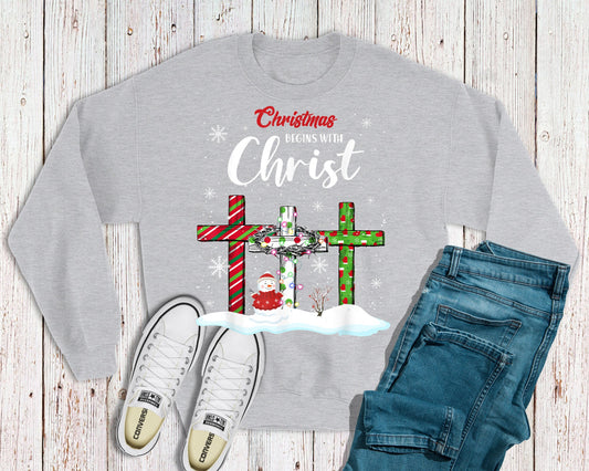 Christmas Begins with Christ Sweatshirt, Merry Christmas, Christmas Sweatshirt, Holiday Party, Christian Sweatshirt, Scripture Sweatshirt