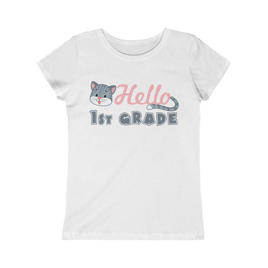 Hello 1st Grade Kitty Design Back to School Shirt First Day of School Toddler Girls Pink White Black Yellow Blue Navy Purple Pink Red