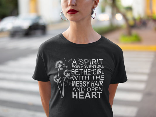 A Spirit for Adventure Be The Girl with Messy Hair and Open Heart Shirt, Adventure Girl Tee, Camping Shirt, Outdoors Shirt, Women Shirt