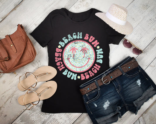 Beach Bum Retro Smiley Shirt, Beach Shirts, Happy Face Shirts, Beach Vibes Shirts, Cute Summer Shirts, Women's Beach Shirts