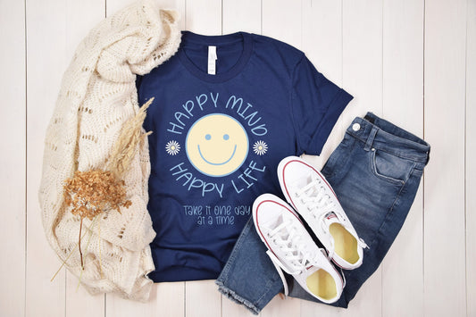 Happy Mind Happy Life Shirt, Aesthetic Shirt, Positive Mind Shirt, Smiley Face Shirt, Trendy Shirt, VSCO Shirt