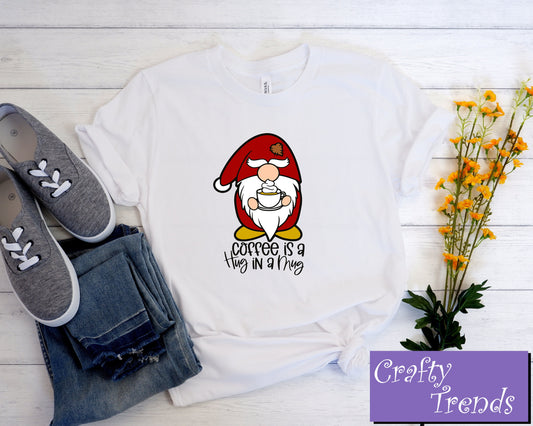 Coffee Is A Hug In A Mug Gnome Shirt, Coffee Gnome T-Shirt, Coffee Gnome Tee, Coffee Lover Gnome Tee, Funny Coffee Gnome T-Shirt,fall tee