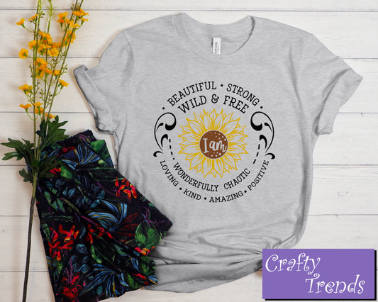 Beautiful Strong Wild and Free Shirt, Cute Shirt,Cute Fall Tee, cute tshirt women, womens tshirt, graphic tee, graphic tshirt,sunflower tee