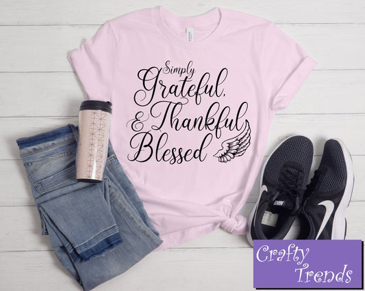 Simply Grateful, Thankful & Blessed Unisex T-Shirt | Christian Tee | Faith Tee | Religious Shirt | Church | Disciple | Love | Grace | Faith