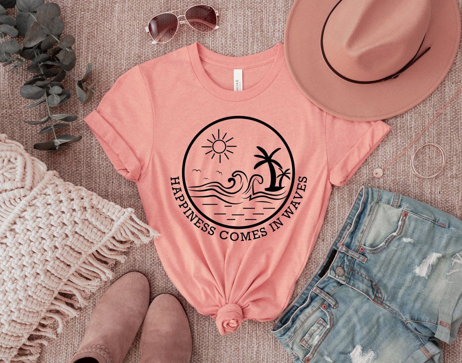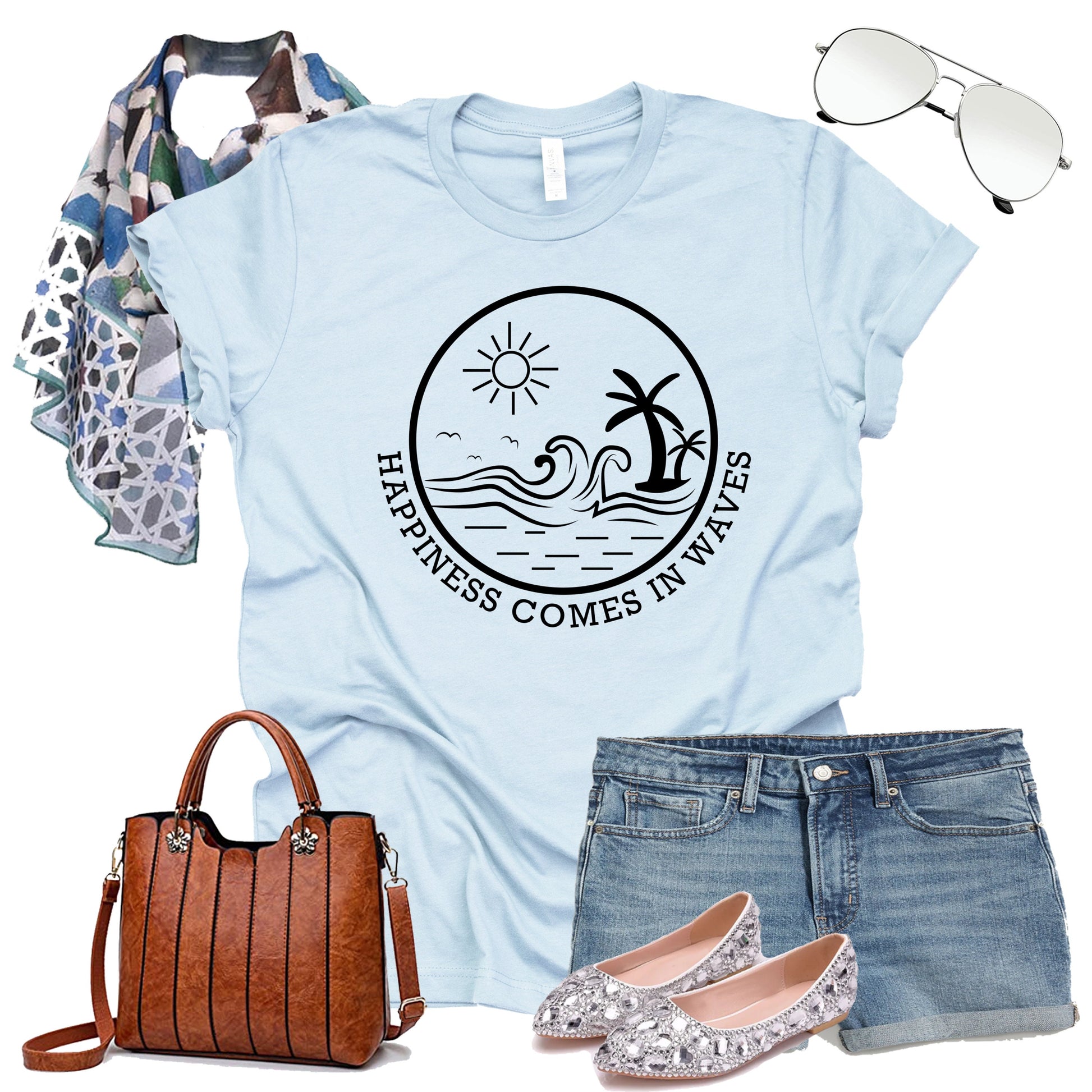 Happiness Comes in Waves Shirt, Ocean Shirt, Summer Vacation Tee, Summer Trip Shirt, Surf Lover Shirt, Wave Lover Shirt, Beach Shirt