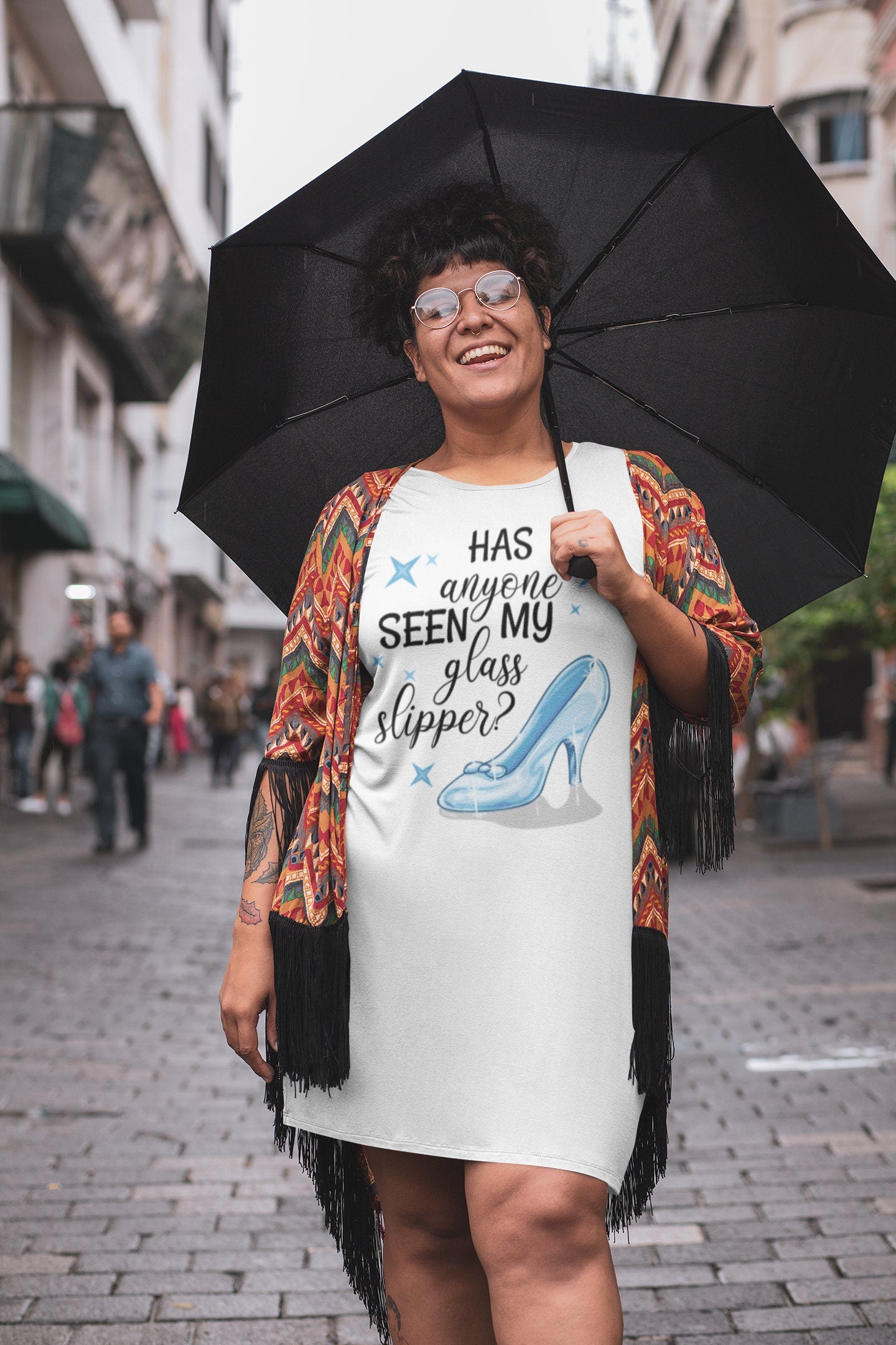 Hello Ladies! Are you looking for that casual and comfortable t-shirt dress to wear to up coming trip to Disney World or Disneyland! Look no further that our cute Has Anyone Seen My Glass Slipper dress. Our casual and essential t-shirt dress is a relaxed fit for an effortlessly look that's ready to style for any occasion. Our t-shirt dress is also an effortlessly easy attire for a Spring or Summer day at your favorite Disney Theme Park. You can dress it up very easily with any combination of cape jewelry, sandals, heels, flip flops or even sneakers. This lovely t-shirt dress is a great addition to any women's wardrobe you love's Cinderella and Disney! Make sure to purchase your dress now!