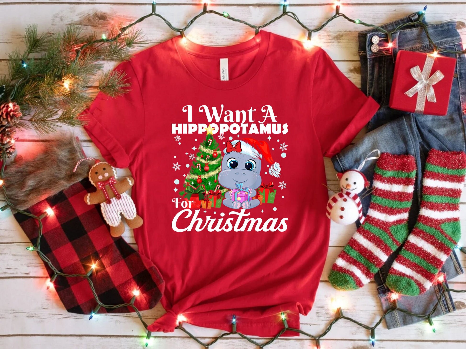 Christmas is the best time of year! Take in this holiday season with our beautiful I Want A Hippopotamus For Christmas shirt! Celebrate the holiday season the right way with our adorable I Want A Hippopotamus For Christmas shirt! This cute and stylish shirt will become your child's favorite shirt for the holidays. If your children like Christmas trees, Christmas lights, Santa and Reindeers and Christmas is their your favorite holiday, than our I Want A Hippopotamus For Christmas shirt is that perfect shirt that you have been searching for your daughter! Our cute Christmas shirt is the perfect shirt for your daughter to wear for their school Christmas party or for any Christmas celebration. If you want to get an adorable baby hippo Christmas gift for someone you know or yourself, get this I Want A Hippopotamus for Christmas shirt! Our adorable I Want A Hippopotamus For Christmas shirt will make that perfect gift for any family members, friends or co-workers. Just add your favorite pair of jeans, leggings along with a cardigan and some short boots for effortlessly trendy look!
