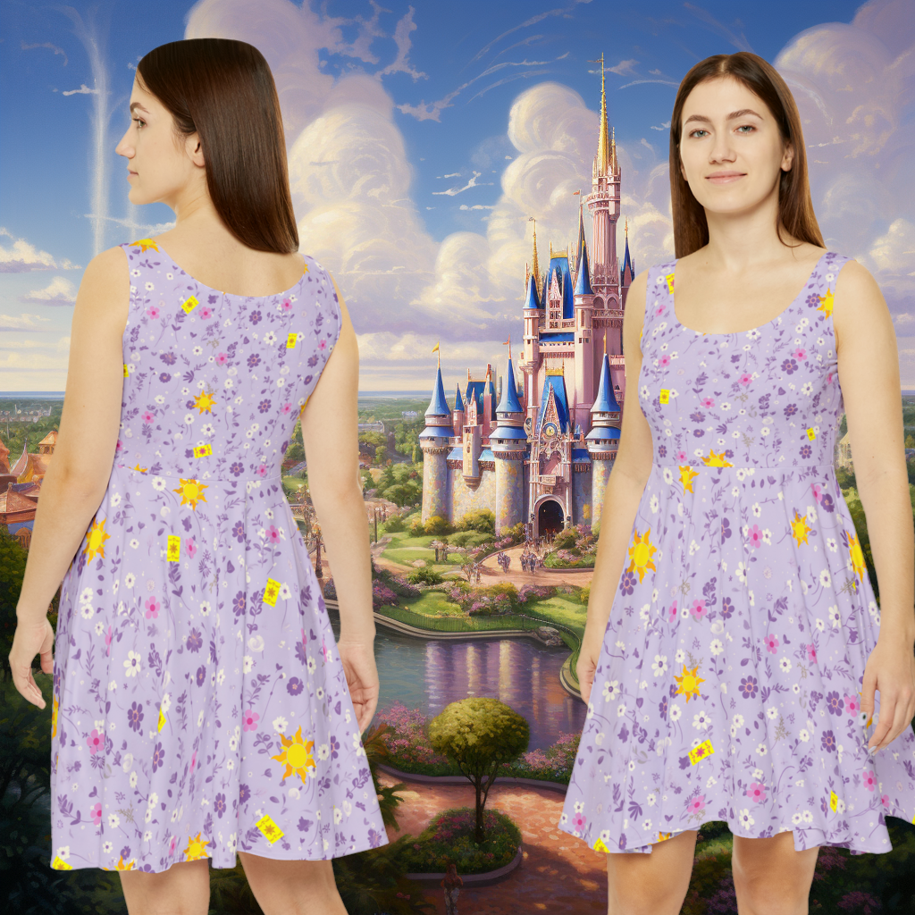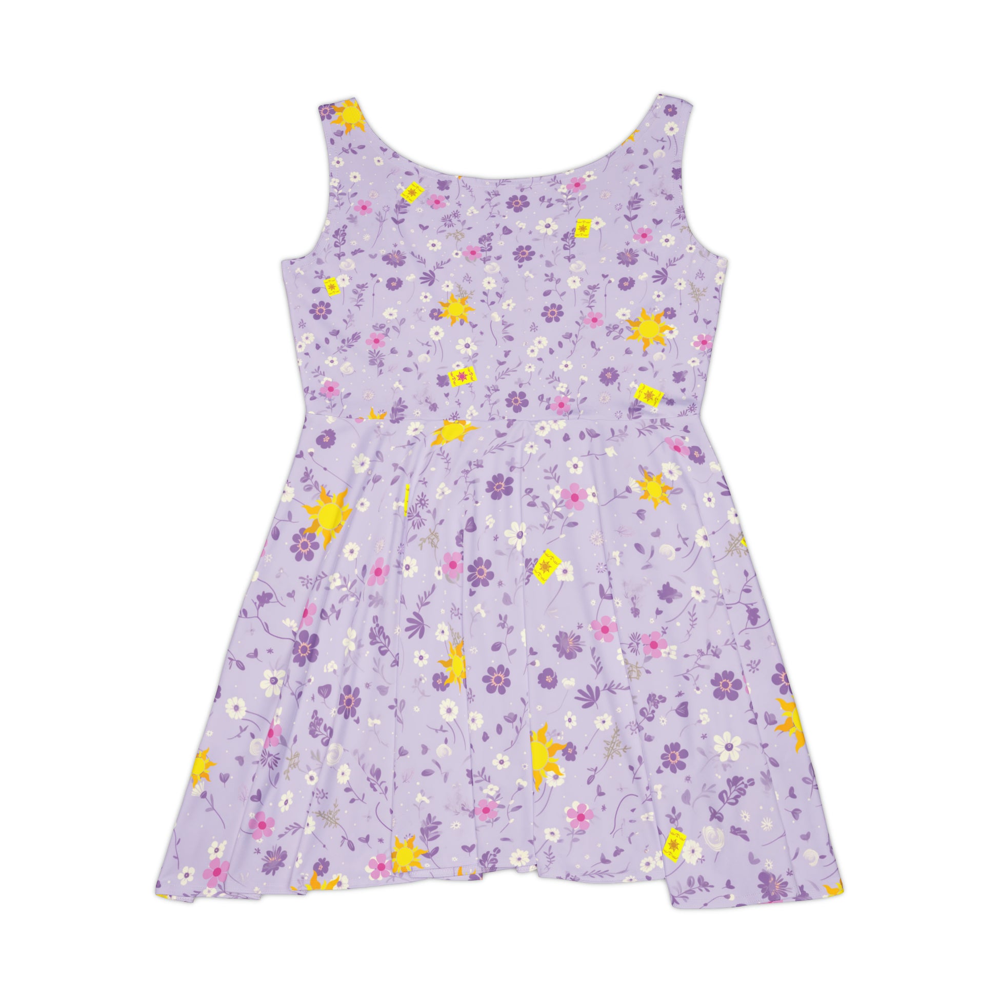 Light Purple Tangled Flowers Yellow Sun Women's Skater Dress