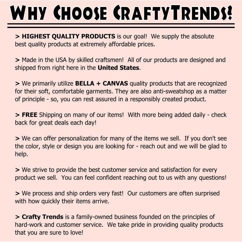 Thank you for choosing our family business! We know that you will love our stuff and be truly happy with your purchase. Be sure to keep up with us on social media as we often post updates, new merchandise and special events for our community.